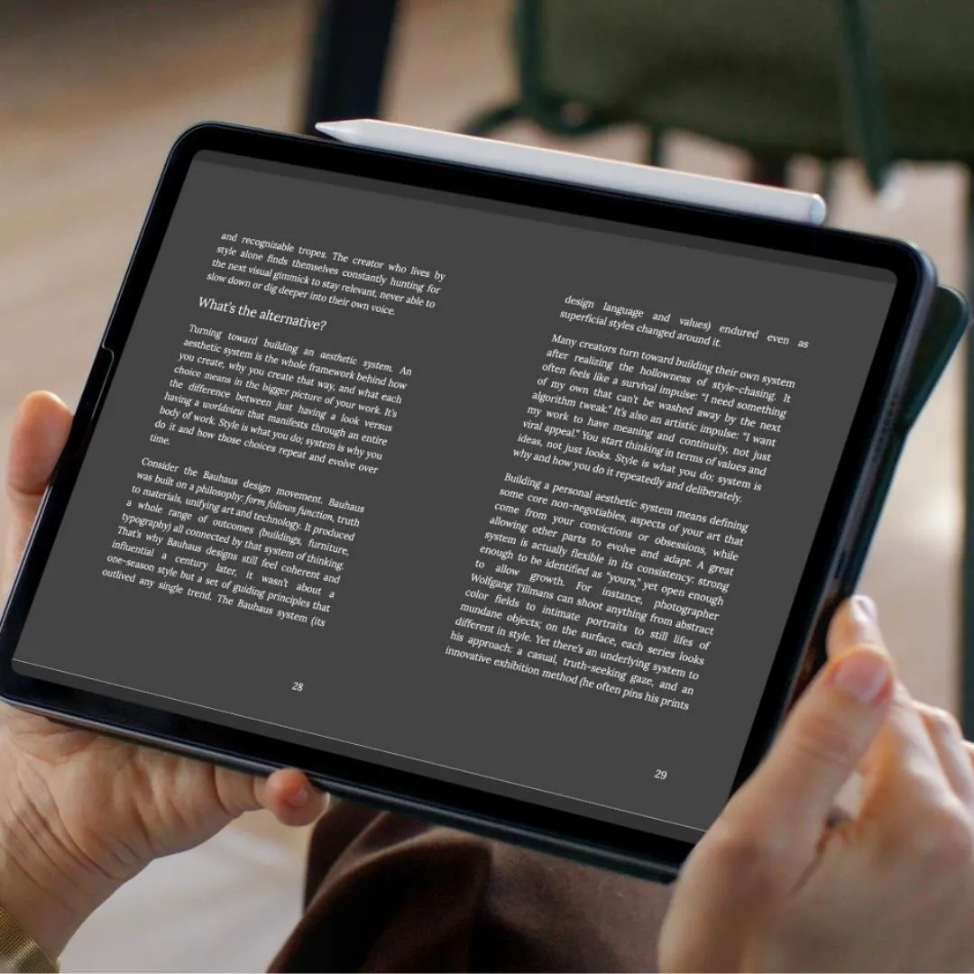 'Make art, not content' is a book for the big creative thinkers who refuse to let their craft be reduced to a service. It’s for those who want to make a living exploring their full potential as creators.