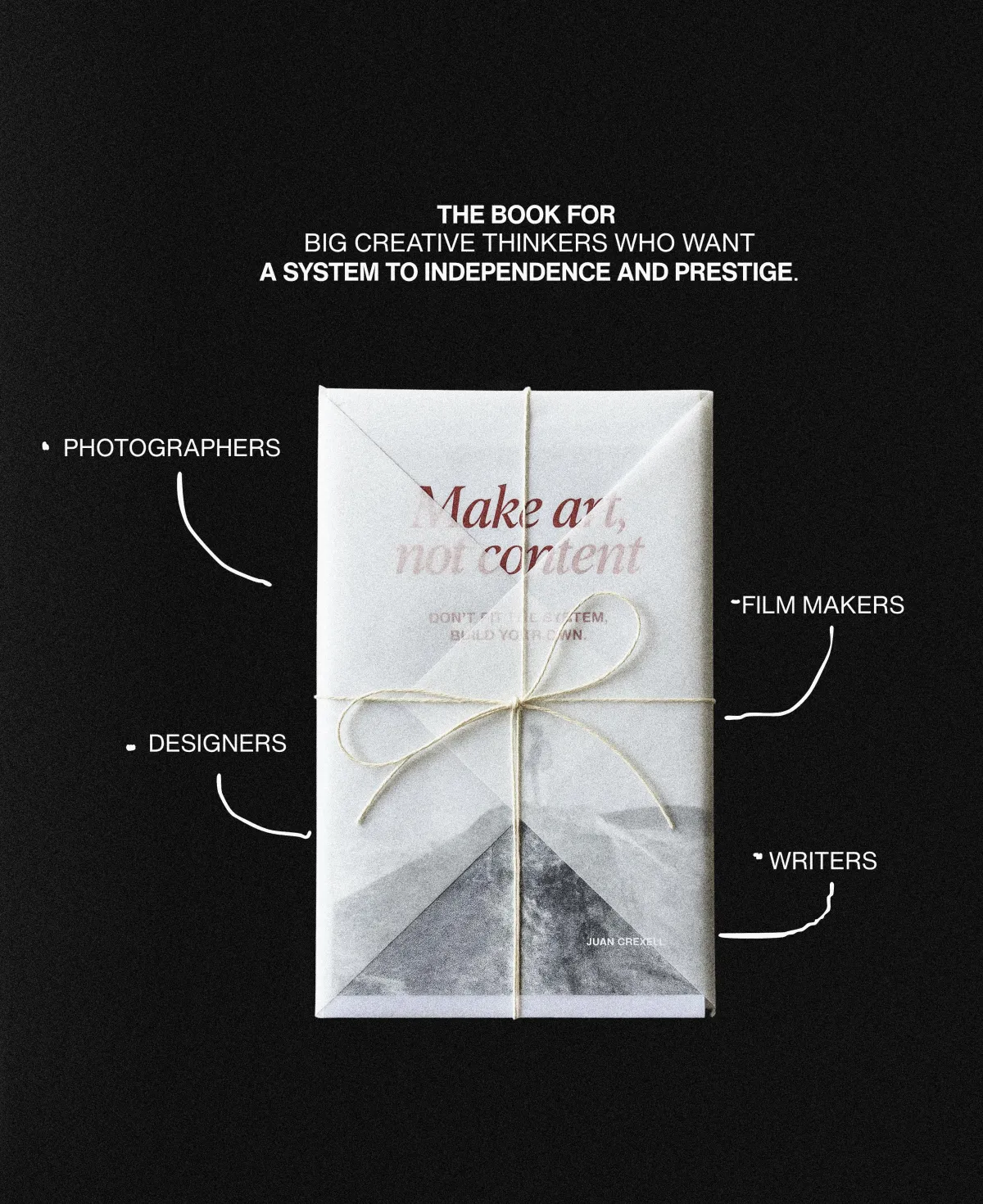 'Make art, not content' is a book for the big creative thinkers who refuse to let their craft be reduced to a service. It’s for those who want to make a living exploring their full potential as creators.